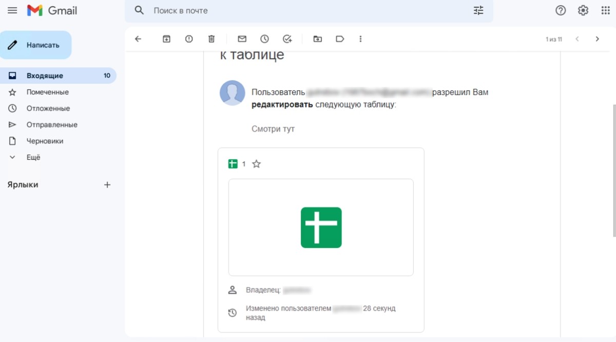 У google есть сервис "Таблицы", можно сделать любую таблицу с любой ссылкой и дать доступ нужному email. На эту почту придет письмо.