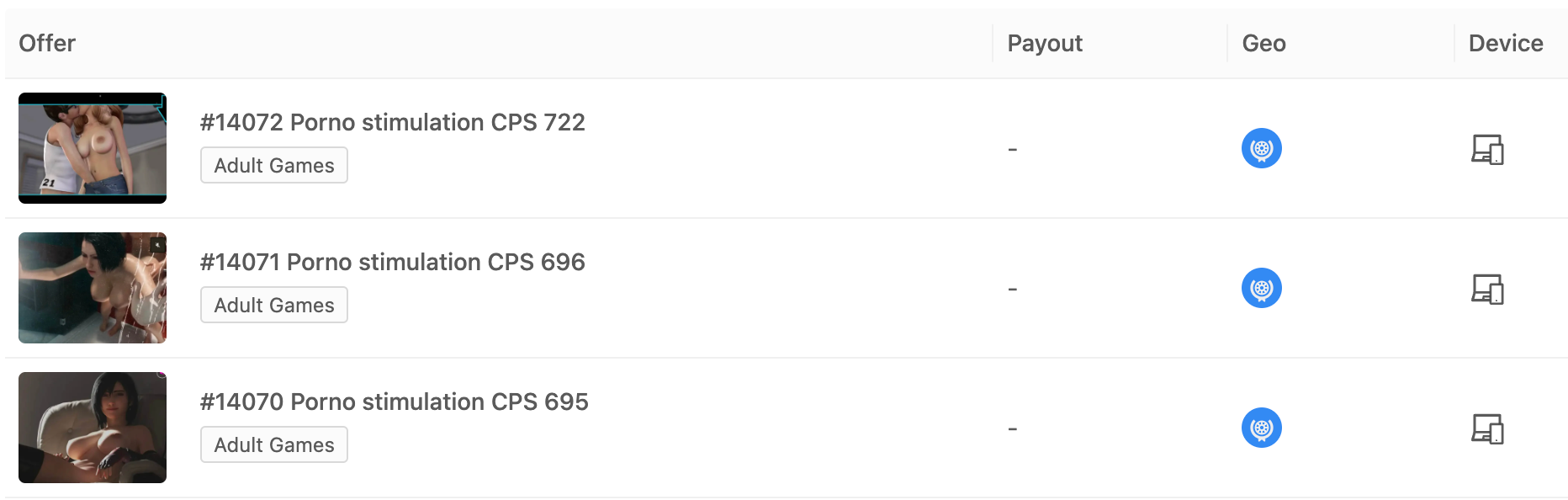 Игры и приложения я никогда не слал, считаю, что это не спам вертикаль. Зато, много слал Adult games. Всякого рода порно игры, в теории, должны идти хорошо по dating базам, но нет, ROI был минимальным.